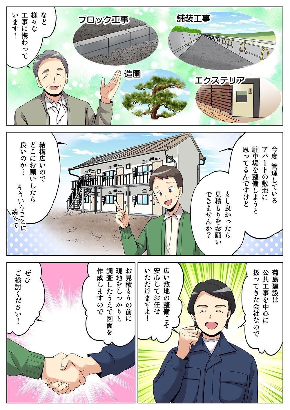 もちろん可能です。舗装の修繕工事、駐車場の設置などもお任せください。